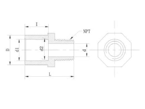 SIZE D d1 d2 I d L NPT(牙/寸)